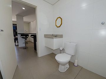 Além de um banheiro privativo, a sala comercial dispõe de 1 vaga de garagem fixa e 1 vaga de garagem rotativa, garantindo a comodidade para você e seus clientes.