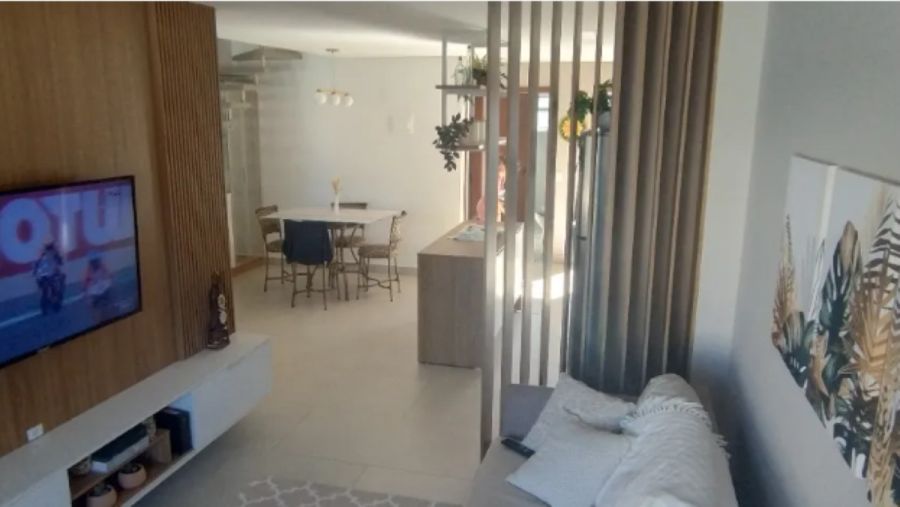 As 2 salas proporcionam ambientes distintos para relaxar e receber amigos, enquanto a cozinha, integrada aos espaços sociais, convida a momentos de convívio e celebração. E para os amantes de carros, a casa dispõe de 2 vagas de garagem, garantindo segurança e comodidade.