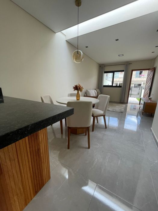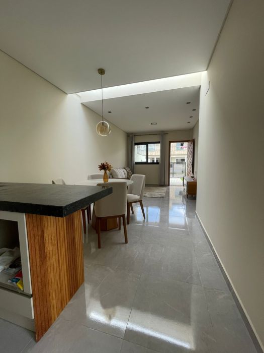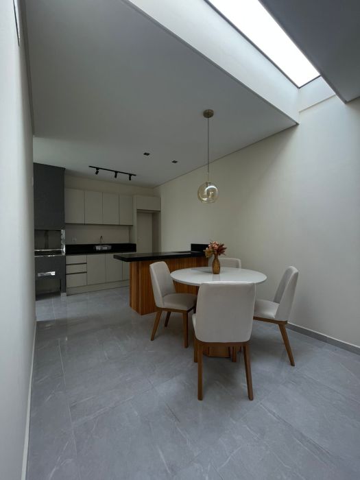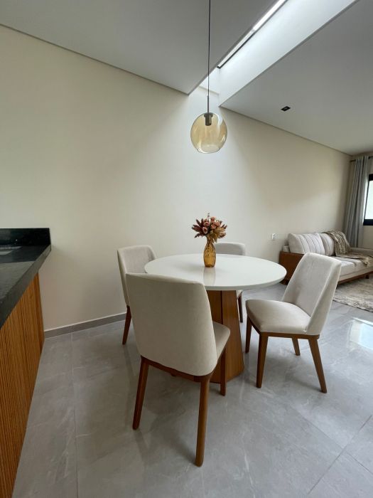 A experiência de morar nesta casa estende-se para a área externa. O jardim privativo oferece um contato direto com a natureza, criando um refúgio particular para momentos de leitura ou lazer ao ar livre. Para os entusiastas da gastronomia e da convivência, a churrasqueira é o ponto central para reunir amigos e familiares em celebrações memoráveis. O imóvel é também um ambiente acolhedor para animais de estimação, garantindo que todos os membros da família desfrutem do espaço com liberdade.